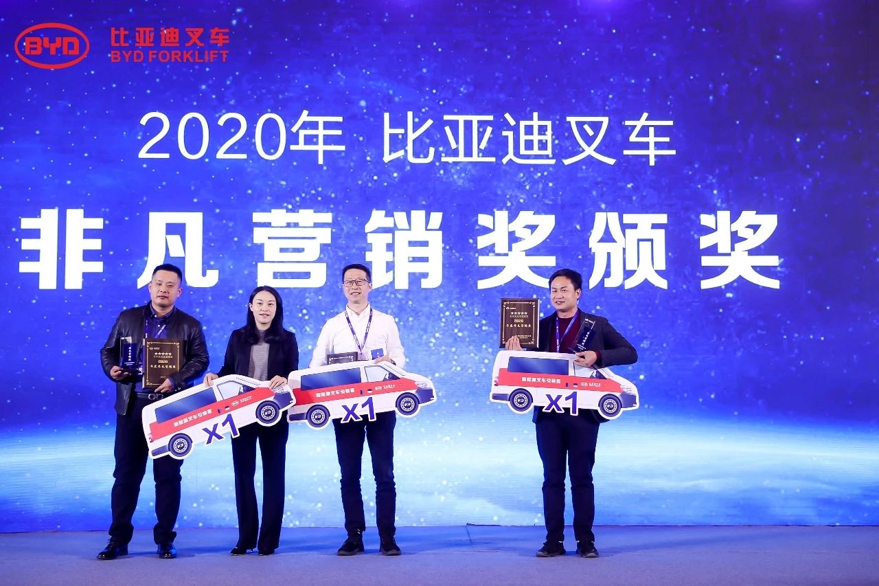 大會同時頒發(fā)了非凡營銷獎、卓越經(jīng)銷商獎項,也對在2020年銷售業(yè)績表現(xiàn)突出的經(jīng)銷商進(jìn)行了獎勵,以感謝他們對比亞迪叉車發(fā)展做出的杰出貢獻(xiàn)。